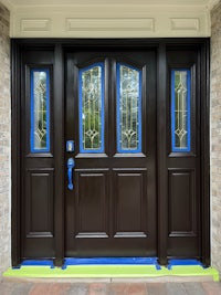 Complete refinish of your front entry door, service door and/or garage door. This type of door is typically wooden, fiberglass or cedar product that has factory finished or has been previously stained and needs its best look brought back again.